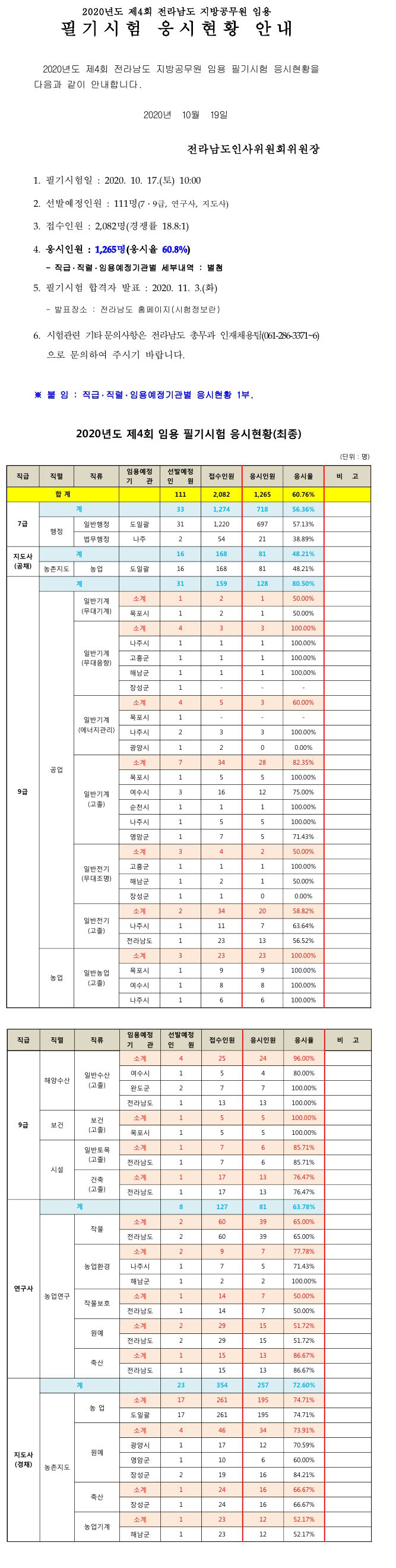 ★ 2020 제4회 전남 지방공무원 임용 필기시험 응시율 페이지 정보 작성자 관리자 댓글 0건 조회 1,568회 작성일 20-10-26 15:59 목록 본문 [이 게시물은 관리자님에 의해 2020-10-26 15:59:40 최근시험공고문에서 복사 됨] 이전글★ 2020 제2회 광주시 지방공무원 임용 필기시험 직렬별 응시율 20.10.26 다음글★ 2020 국회사무처 시행 9급 공개경쟁채용시험 필기시험 합격선 20.09.22 댓글 0 댓글목록 등록된 댓글이 없습니다.