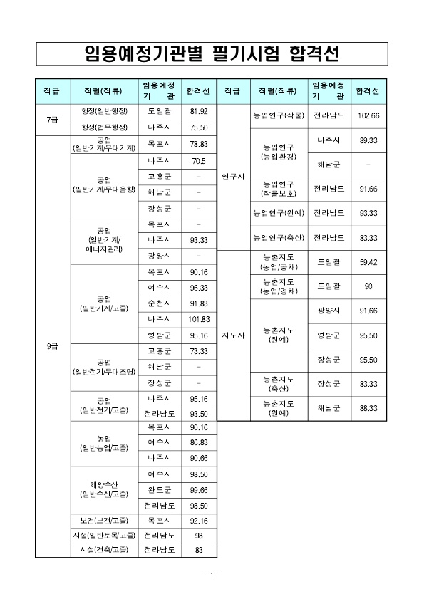 ★ 2020 제4회 전남 지방공무원 임용 제1·2차 필기시험 합격선 페이지 정보 작성자 관리자 댓글 0건 조회 1,735회 작성일 20-11-06 17:21 목록 본문 [이 게시물은 관리자님에 의해 2020-11-06 17:21:48 최근시험공고문에서 복사 됨] 이전글★ 2020 인사혁신처 국가공무원 7급 공개경쟁채용 필기시험 응시율 20.11.06 다음글☆ 2020 전남 청원경찰 채용 필기시험 응시율 20.11.06 댓글 0 댓글목록 등록된 댓글이 없습니다.