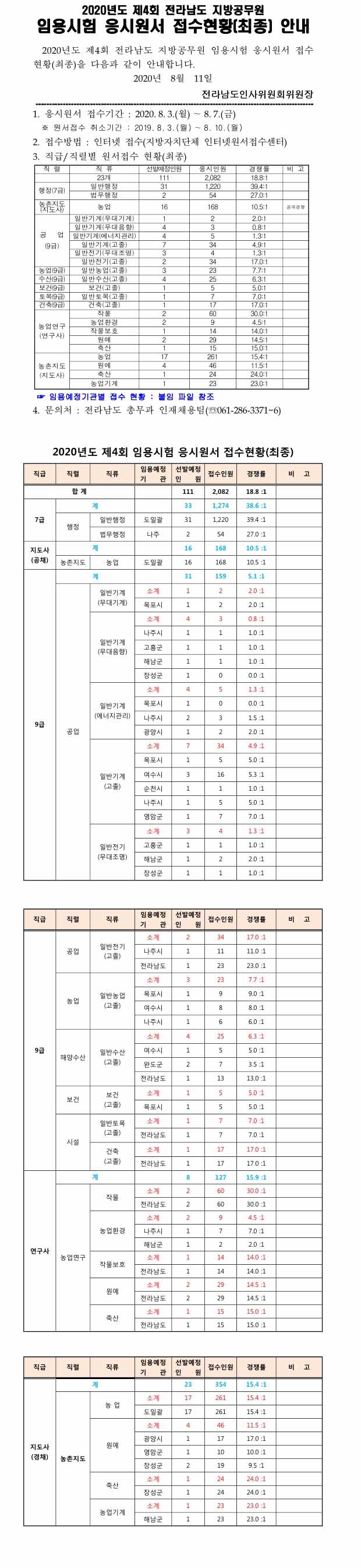 ★ 2020 제4회 전남 지방공무원 임용시험 경쟁률(최종) 페이지 정보 작성자 관리자 댓글 0건 조회 1,526회 작성일 20-08-17 08:09 목록 본문 [이 게시물은 관리자님에 의해 2020-08-17 08:09:47 최근시험공고문에서 복사 됨] 이전글★ 2020 제1차 경찰청 경찰공무원(순경) 채용 필기시험 합격선 20.08.17 다음글★ 2020 제18회 국회사무처 8급 공개경쟁채용시험 통계자료 20.07.29 댓글 0 댓글목록 등록된 댓글이 없습니다.