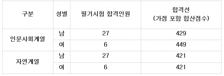 제26기 중앙소방학교 소방간부후보생 선발 필기시험 합격선